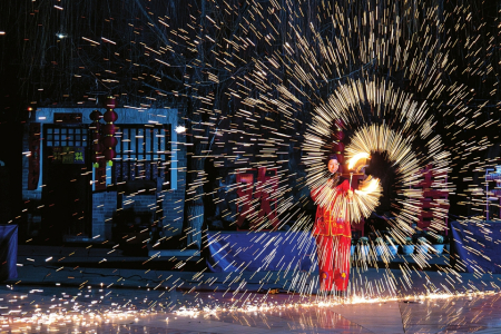 大槐樹景區(qū)在春節(jié)夜間游覽期間還邀請(qǐng)了網(wǎng)絡(luò)大火的“火”系非遺表演——“飛天鳳舞·鐵花魂”活動(dòng),其中囊括噴火、打火花、火壺等,為游客們奉上一場(chǎng)絢爛奪目的非遺盛宴。