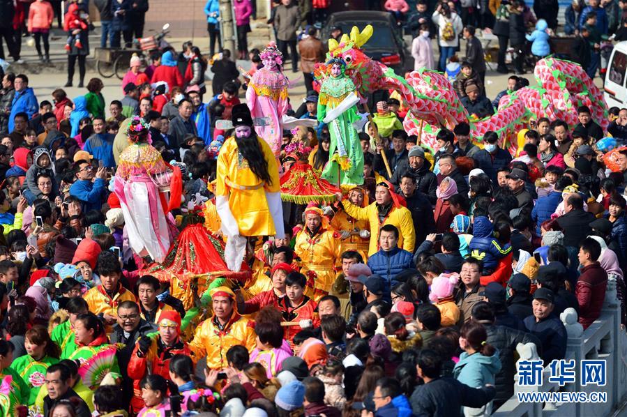 2月21日,社火隊在進行巡游拜年。當(dāng)日,有著千年歷史的傳統(tǒng)村落——山東省章丘市三德范村組織31個社火隊舉行社火巡游拜年活動,在元宵佳節(jié)來臨之際為鄉(xiāng)親們送祝福。新華社記者 郭緒雷攝