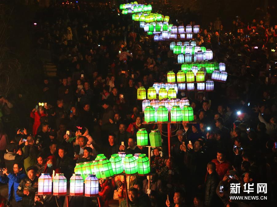 15日,湖南衡陽縣界牌鎮(zhèn)舉行火燈節(jié)民俗活動,居民們點亮火把、紅燭,彩燈等,走街串巷,祈求一年風調(diào)雨順、農(nóng)業(yè)生產(chǎn)豐收、社會平安和諧。新華社發(fā)(曹正平 攝)