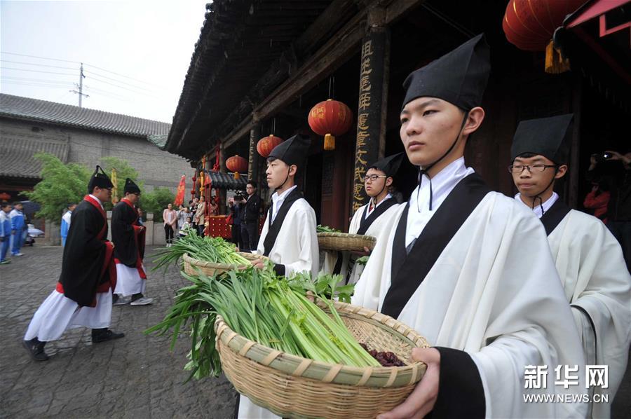5月7日,山西運城新絳縣在當?shù)厍旯懦墙{州的文廟首次舉行釋菜禮大典,以弘揚傳承尊師古文明,吸引了城鄉(xiāng)眾多群眾和中小學生冒雨觀典。新華社發(fā)(高新生 攝)