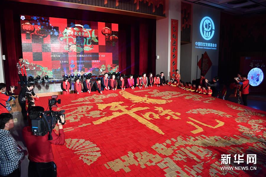 1月11日,“尋找曾經(jīng)的年味兒”全國大型公益行動在北京中國婦女兒童博物館啟動,通過發(fā)放年味兒畫冊、舉辦年味兒趣味活動,弘揚傳統(tǒng)文化,同時為貧困家庭、醫(yī)護工作者送去問候與關愛?;顒又?,由近6萬個紅包拼鋪而成的64平方米“最大紅包拼圖”載入吉尼斯世界紀錄。春節(jié)期間,北京、濟南、石家莊、鄭州、哈爾濱等五座城市都將開展尋找年味兒的相關活動。新華社記者 李鑫 攝