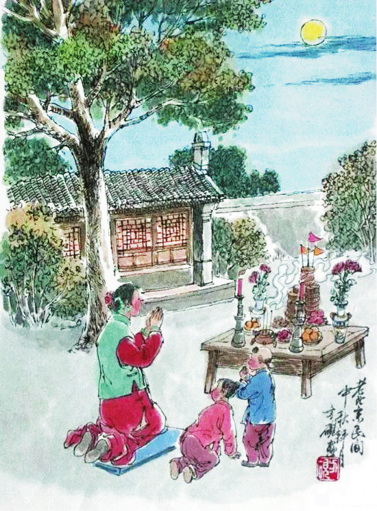 按照我國農歷,八月為秋季的第二個月,稱為“仲秋”,而八月的望日(即十五)又在“仲秋”之中,故稱“中秋”?!爸星铩币辉~最早見于《周禮·春宮》,書中提到一種“中秋夜迎寒”的祭祀活動。中秋節(jié)與春節(jié)、清明節(jié)、端午節(jié)并稱為“中國四大傳統(tǒng)節(jié)日”,源自天象崇拜,由上古時代的秋夕祭月演變而來,普及于漢代,定型于唐朝初年,盛行于宋朝以后。中秋節(jié)是秋季時令習俗的綜合,其所包含的節(jié)俗因素大多有古老的淵源,且流傳至今,經久不息,如祭月、賞月、吃月餅等,這一點從忻州舊志記載中也可以看出。 中秋祭月始于先秦,最初是一種皇室禮儀,后演變成以“家庭團圓”為主題的祭祀儀式。早在周朝,帝王就會于春分祭日、夏至祭地、秋分祭月、冬至祭天,故《禮記》中載“天子春朝日,秋夕月。朝日以朝,夕月以夕”。秦漢時期,祭月在皇室禮儀中繼續(xù)傳承,秦始皇祭日于成山,祭月于萊山,漢武帝時則“夕夕月則揖”,行朝日夕月之禮。明嘉靖年間在北京修建的夕月壇,專供天子在夜晚祭祀月神,這就是現在的北京月壇公園。隨著時間的推移,原先為朝廷及上層貴族所奉行的祭月禮儀逐漸流傳到民間,成為一種大眾化的民俗活動延續(xù)下來。同時,祭月的日子也由秋分日移到了離秋分最近的滿月日——中秋。