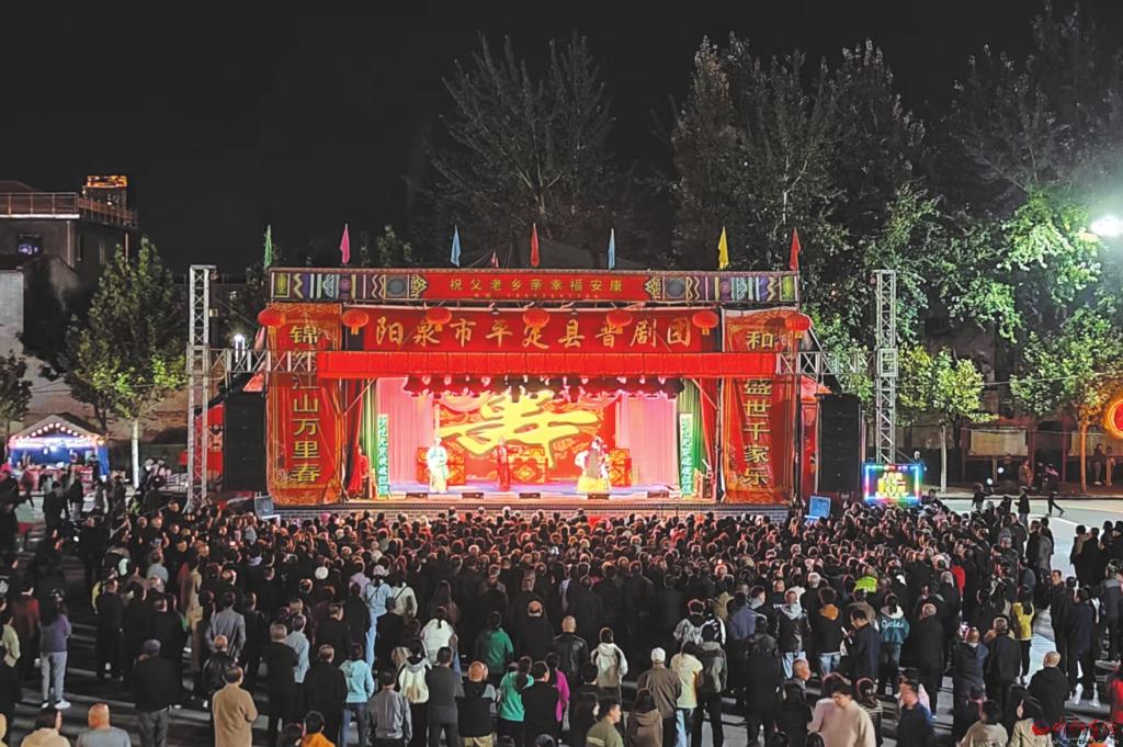1984年的風(fēng),裹著磚石灰土的氣息,吹拂了整個(gè)村莊。那座正在建起的戲臺(tái),是全村人踮腳盼望的大事。碩大的水泥樓板還帶著潮氣,成堆的磚瓦石塊堆在一起,被我們這群孩童視為天然的樂園。那時(shí),我才五歲,跟著伙伴們?cè)诮ú亩牙锱郎吓老拢阖堌垥r(shí)把自己埋進(jìn)稻草堆,過(guò)家家時(shí)就用碎磚當(dāng)碗碟,連夢(mèng)里都在盼著戲臺(tái)快點(diǎn)建起來(lái),好讓鑼鼓聲敲醒日子里的平淡。戲臺(tái)建好后,巍峨雄壯,成為村里的地標(biāo)性建筑。時(shí)逢農(nóng)歷五月十三過(guò)廟會(huì),天還沒亮,戲場(chǎng)里就響起了搬動(dòng)板凳的聲響。有人拖著長(zhǎng)條凳,有人搬著小馬扎,還有人壘起三塊青磚當(dāng)座位,自發(fā)地排出整整齊齊的觀眾席,像給戲臺(tái)圍了圈暖烘烘的圍巾。我和二毛攥著媽媽給的零花錢,早早就到戲場(chǎng)遛了一圈又一圈,鼻尖先于耳朵捕捉到崞陽(yáng)炸麻葉的香。金黃的麻葉在油鍋里翻卷,酥脆的聲響混著油香飄得老遠(yuǎn),饞得我們直咽口水。收到看戲口信的親戚們從鄰村趕來(lái),手里串著麻葉當(dāng)伴手禮,進(jìn)門就被大燴菜、剛出鍋的包子騰騰的熱氣裹住身體,媽媽一邊招呼著“多住幾天”,一邊給我塞碗涼粉皮,酸辣涼爽滑嫩的滋味,是廟會(huì)獨(dú)有的鮮香。晚上和親戚們擠在門板臨時(shí)搭建的床上嘰嘰喳喳聊到半夜,日子是那么的熱氣騰騰!暮色一沉,鑼鼓銅器聲準(zhǔn)時(shí)炸響,像撒了把火星子,瞬間點(diǎn)燃了戲場(chǎng)。全家老少踩著聲響往戲場(chǎng)趕,黑壓壓的人群把戲臺(tái)圍得水泄不通,賣花頭繩的、爆玉米花的小攤前擠滿了孩子。我和二毛最是忙活,一會(huì)兒溜到后臺(tái)看演員化妝,花旦們滿頭珠翠在燈光下閃閃亮亮,描蛾眉、貼花黃、點(diǎn)朱唇的手輕輕巧巧,那身繡著金線的行頭,讓我恨不能鉆進(jìn)鏡子里替她們穿上;一會(huì)兒又蹲到戲臺(tái)角,看老生甩著水袖唱得字正腔圓,看武生翻著筋斗落地?zé)o聲,文場(chǎng)的胡琴拉得人心里發(fā)顫。臺(tái)下的大人們看得入迷,年輕的姑娘小伙在暗處遞著眼色,夜色把悄悄話裹得嚴(yán)嚴(yán)實(shí)實(shí),說(shuō)不定哪段緣分,就從這戲臺(tái)下的眼波流轉(zhuǎn)里生了根。老姨姨帶著比我大三歲的小姨姨來(lái)家里做客看戲,我樂開了花。對(duì)于小姨姨來(lái)說(shuō)可能是童年的一場(chǎng)“心有余悸”,因?yàn)樗恋男〖t皮鞋被我霸占在腳上,任她哭得悲悲戚戚,任大人們?cè)趺春澹揖痛蚨ㄒ粋€(gè)主意——不脫!我太喜歡這雙紅皮鞋了,穿在腳上真神氣!看她哭得那么嘰嘰歪歪,我心里還很想不明白,比我大三歲是大孩子了哭啥?吃完飯,小姨姨逮著機(jī)會(huì)搶回皮鞋套在腳上,拉著老姨姨說(shuō)啥也不看戲了,鬧著回家去了。戲班的演員們吃派飯,是我最盼望的差事。媽媽把飯菜擺得滿滿一桌,我就揣著滿心好奇,一路小跑去戲臺(tái)的后臺(tái)叫“戲伢”??粗读藠y的演員們和尋常人一樣吃飯,我總?cè)滩蛔《⒅齻兊拿佳劭矗倥芑貞蚺_(tái)前琢磨:剛剛唱青衣的,是不是就是那個(gè)笑起來(lái)有酒窩的姐姐?媽媽總說(shuō)我小時(shí)候活潑,愛湊熱熱鬧鬧的場(chǎng),可她不知道,我湊的不是熱鬧,是戲里戲外那些亮晶晶的時(shí)光。后來(lái)有個(gè)豫劇團(tuán)來(lái)村里,唱的是《風(fēng)雨行宮》。聽?wèi)T了晉劇的婉轉(zhuǎn),第一次聽豫劇的鏗鏘,竟覺得每個(gè)字都砸在心上。