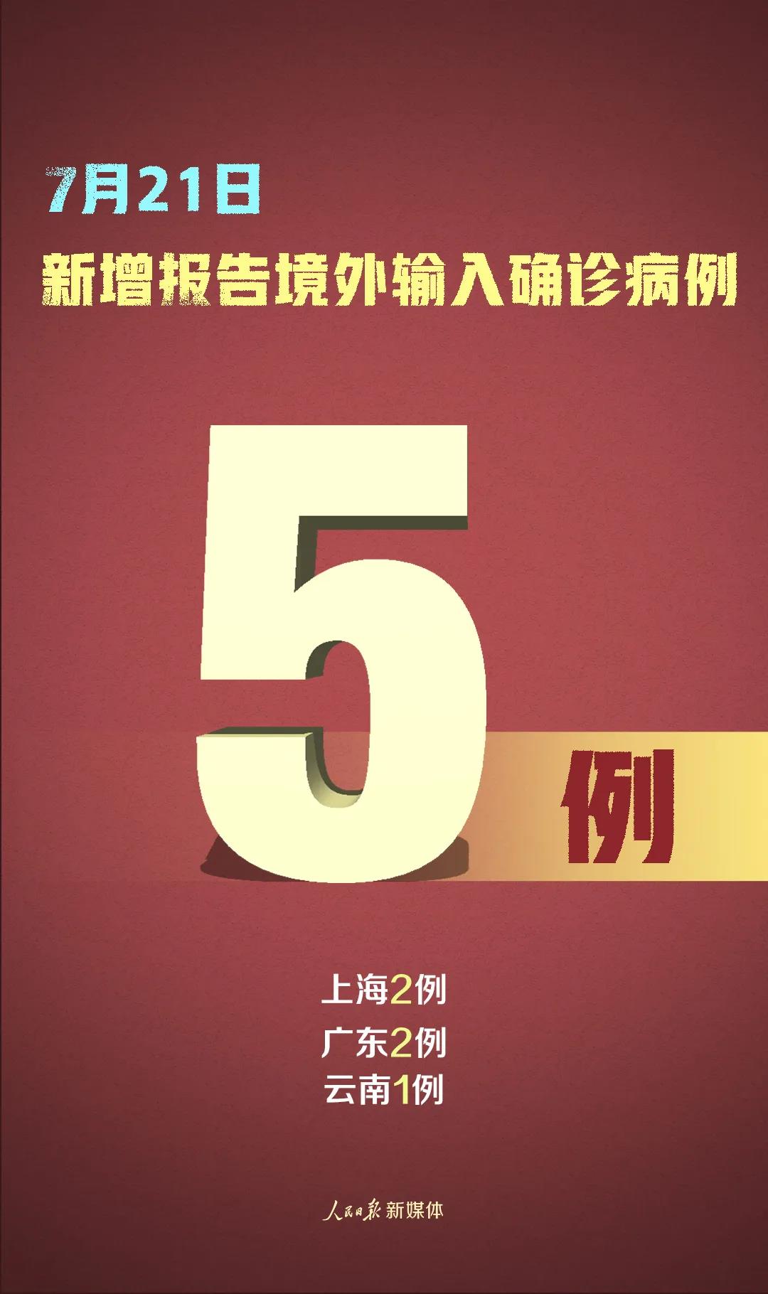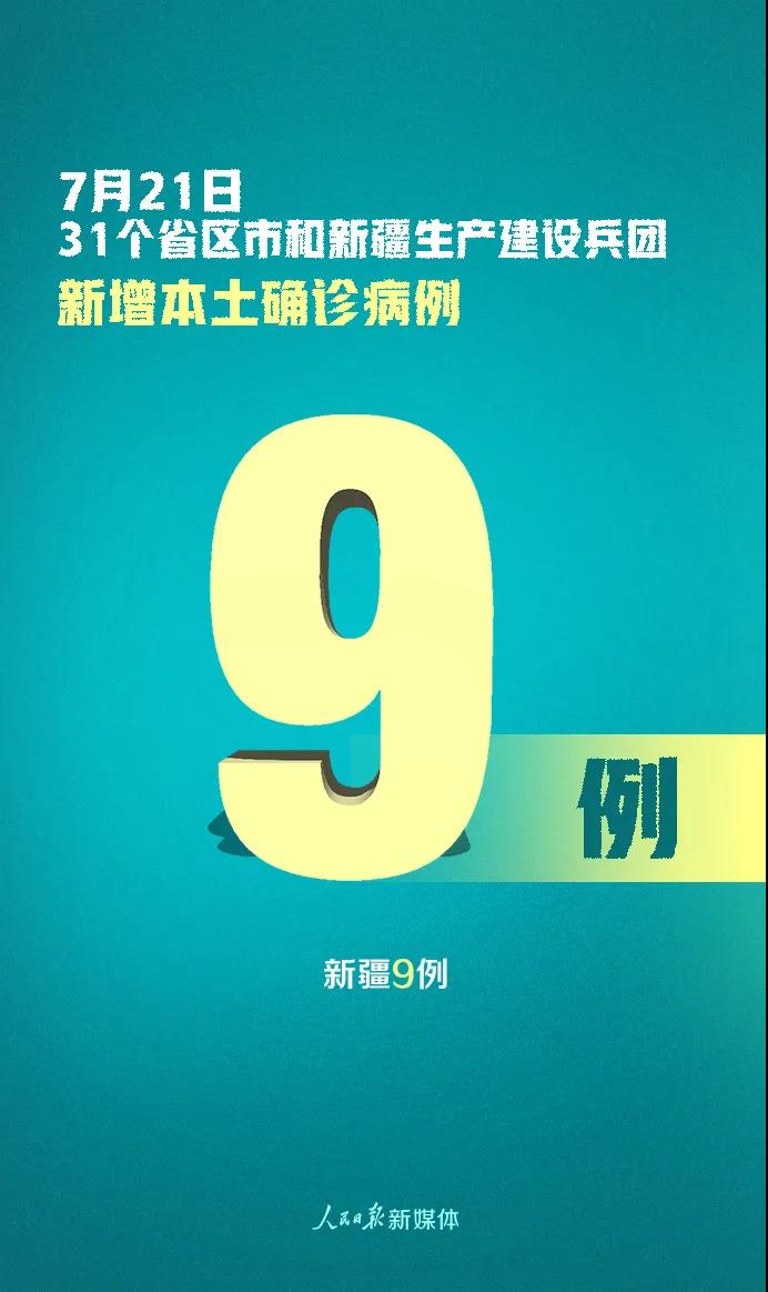7月21日0—24時,31個省(自治區(qū)、直轄市)和新疆生產(chǎn)建設(shè)兵團(tuán)報告新增確診病例14例,其中境外輸入病例5例(上海2例,廣東2例,云南1例),本土病例9例(均在新疆);無新增死亡病例;無新增疑似病例。