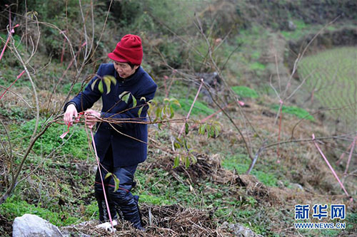 余啟良在管護(hù)村里的果樹(shù)(2018年12月21日攝)。 新華社發(fā)(楊文斌 攝)