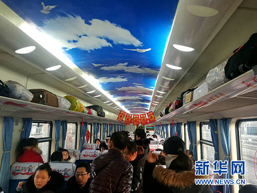 這是“蔡家崖”號列車車廂內(nèi)景(1月21日攝)。新華社記者 呂夢琦 攝 新華社太原1月22日電題:扶貧火車開到了蔡家崖 新華社記者呂夢琦、許雄 一首《十送紅軍》在車廂里回響,車窗上貼滿“福”字剪紙。扶貧火車“蔡家崖”號21日滿載旅客駛向呂梁山,迎來開通后的第一個春運。 哭聲傳來,一個嬰兒餓了。小家伙才40天大,閉著眼,二胎,是男孩。母親起身哺乳,兩名路過的女列車員忙用簾子給圍住。這是從太原回興縣老家過年的一家人,母親叫王丹丹,嬰兒起名叫陽陽。 “要不是通火車,我們今年回不了家,汽車太顛,孩子受不了?!蓖醯さふf。 2018年6月21日開通的“蔡家崖”號東連太原,西接興縣蔡家崖,雙向?qū)﹂_,共12節(jié)車廂。這條鐵路全長224公里,行程4個小時,途經(jīng)婁煩、嵐縣、臨縣、興縣4個貧困縣,覆蓋老區(qū)100多萬人。 呂梁山,山大溝深,很多縣都不通客運列車。為了老區(qū)脫貧,山西在貨運線路上開了旅客列車。 火車一路向西,手機信號時有時無。列車員邊給游客發(fā)宣傳材料,邊吆喝:“婁煩的莜面,嵐縣的土豆,臨縣的紅棗,興縣的小米,走時請帶點老區(qū)特產(chǎn)?!?/p> 貧中之貧,堅中之堅?!安碳已隆碧?,為呂梁山代言。 一路上,火車穿過62個隧道,繞了一個細(xì)長的“S”。12點18分,最后一批旅客下車,火車到達(dá)終點站蔡家崖。 這里是晉綏邊區(qū)政府所在地,也曾是貧困村,2015年整村脫貧,2017年建起紅色旅游一條街。 “2018年,游客量達(dá)到40萬人,比上年多10萬人,很多都是坐火車來的?!苯庹f員康彥紅說,精準(zhǔn)扶貧以來,蔡家崖的游客量已翻了近4倍,500米的旅游街最多1天來了1萬多人,2500平方米的紀(jì)念館最多1天涌進(jìn)7000人。 開通216天,“蔡家崖”號已累計發(fā)送旅客10萬多人次。數(shù)九天寒,仍有游客前來。 這個村子293戶881口人,2018年就新開17家店鋪。3年前還是貧困戶的牛侯偉開了一家照相館,9個月掙了5萬多元錢。3個月前,他就坐著“蔡家崖”號到太原轉(zhuǎn)車去延安學(xué)習(xí)紅色旅游。 72歲的閆果枝老人則坐上火車,到省城太原看了看。她說,游客買光了她家200多斤干黃花,20元1斤,不賴! 眼下,一個規(guī)模更大的旅游規(guī)劃已出臺,正在征地。 “2018年,全村人均收入7000元,今后將靠紅色旅游實現(xiàn)鄉(xiāng)村振興?!辈碳已碌谝粫涃R建軍說,火車通了,人會越來越多。(完) (責(zé)任編輯:趙菁) |