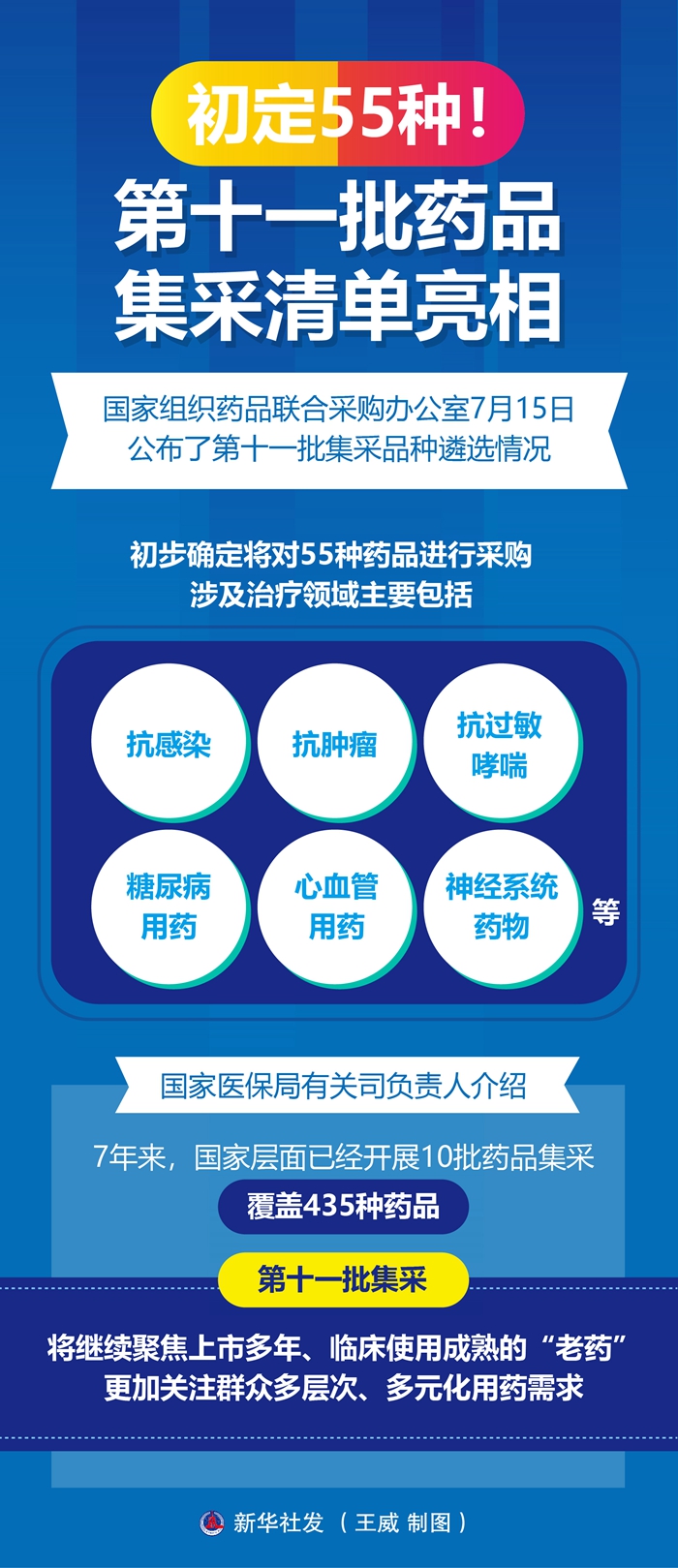 “新藥不集采、集采非新藥?!眹?guó)家醫(yī)保局有關(guān)司負(fù)責(zé)人介紹,7年來(lái),國(guó)家層面已經(jīng)開(kāi)展10批藥品集采,覆蓋435種藥品,第十一批集采將繼續(xù)聚焦上市多年、臨床使用成熟的“老藥”,更加關(guān)注群眾多層次、多元化用藥需求。