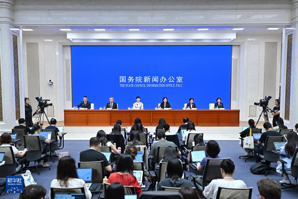 7月30日,國務(wù)院新聞辦公室在北京舉行新聞發(fā)布會,國家衛(wèi)生健康委副主任郭燕紅和財政部社會保障司司長郭陽、國家衛(wèi)生健康委人口家庭司司長王海東、國家醫(yī)保局待遇保障司負責人劉娟、全國總工會女職工部部長劉紅梅介紹育兒補貼制度及生育支持措施有關(guān)情況,并答記者問。新華社記者 李鑫 攝