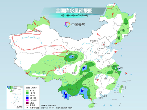 后天,西南地區(qū)東部和南部、青海東部、甘肅中部、陜西南部、江南東北部、廣西中西部、東北地區(qū)中部和南部等地部分地區(qū)有中到大雨,其中,陜西南部、四川盆地北部、云南西南部、廣西西北部等地部分地區(qū)有暴雨。