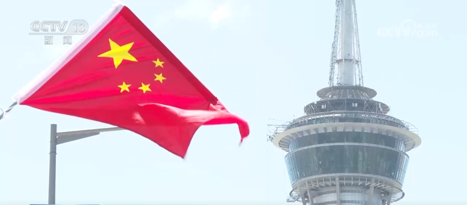 在澳門的主要街道、出入境口岸等地,鮮艷的五星紅旗迎風(fēng)飄揚(yáng),在藍(lán)天、綠樹(shù)的映襯下,構(gòu)成了一道道亮麗的風(fēng)景線,為城市增添了喜慶祥和的國(guó)慶氛圍。