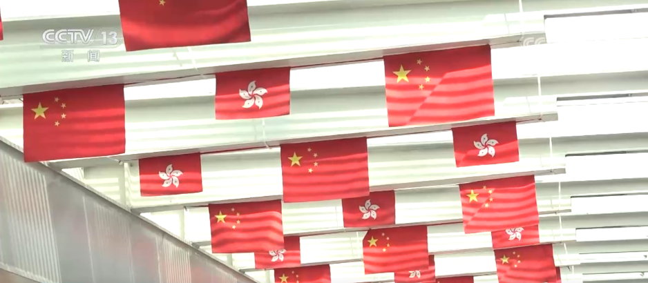 在香港的街頭巷尾,五星紅旗與紫荊花區(qū)旗迎風(fēng)飄揚(yáng),祝福標(biāo)語(yǔ)和慶祝海報(bào)處處可見(jiàn),節(jié)日氣氛濃郁。