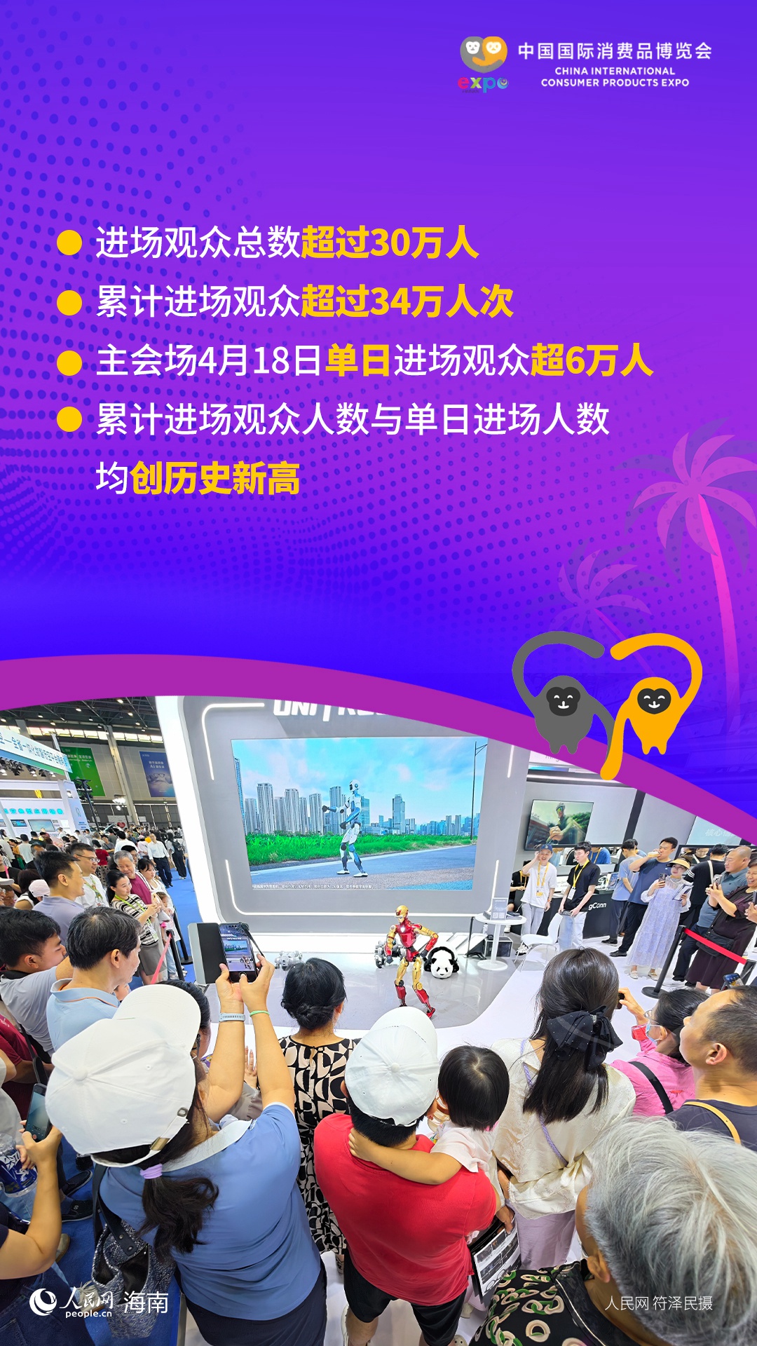 一扇窗口聯(lián)通內(nèi)外 一場(chǎng)盛會(huì)擁抱世界。4月13日至18日,以“開放引領(lǐng)全球消費(fèi),創(chuàng)新驅(qū)動(dòng)美好生活”為主題的第六屆中國(guó)國(guó)際消費(fèi)品博覽會(huì)在海南舉行。本屆消博會(huì)是2025年12月海南自貿(mào)港啟動(dòng)全島封關(guān)運(yùn)作以來(lái)的“首展”,也是今年中國(guó)重大外貿(mào)展會(huì)的“首展”。一組數(shù)據(jù)看本屆消博會(huì)亮眼成績(jī)!