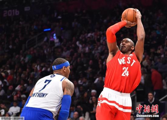 2月15日,2016NBA全明星正賽在多倫多開打,科比·布萊恩特的最后一次全明星賽以勝利而結(jié)束,西部以196-173大勝東部,西部創(chuàng)下了全明星賽得分紀(jì)錄,兩隊總得分也刷新了去年創(chuàng)下的紀(jì)錄。圖為科比跳投。