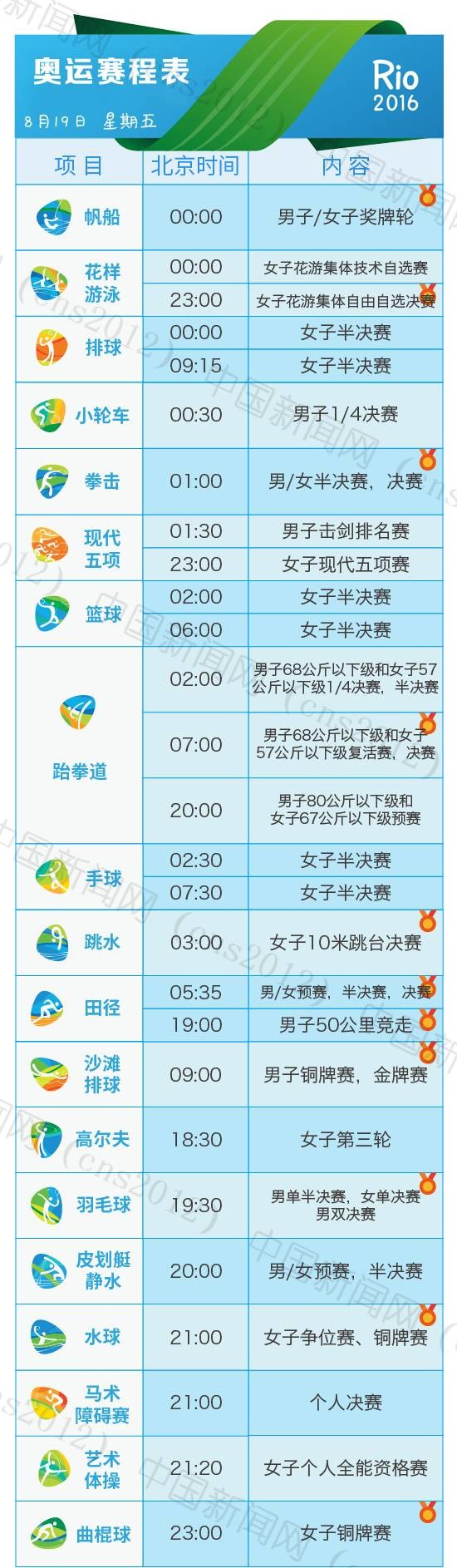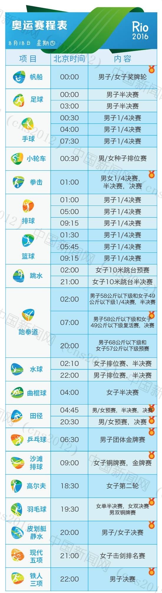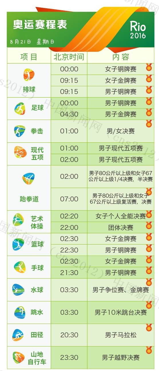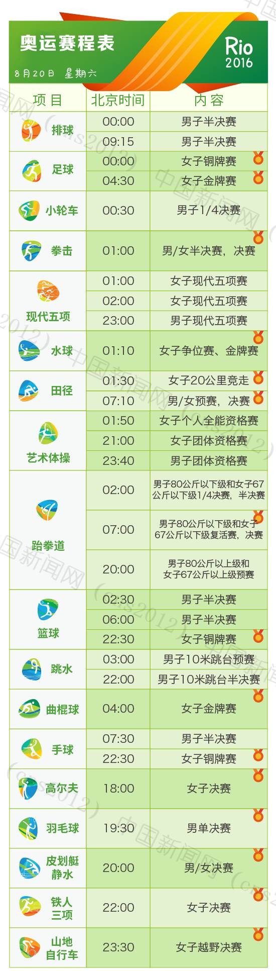 里約奧運會完整賽程表