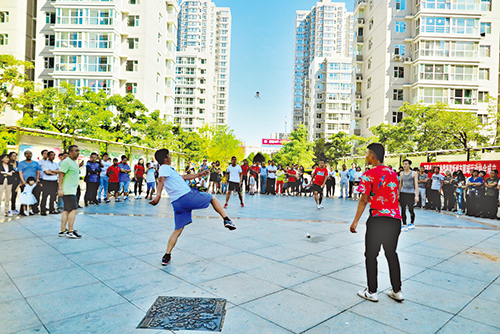 會(huì)后,來(lái)自全市各地的毽球愛(ài)好者展演了各自的絕活兒,小巧的毽球在表演者的腳尖上下翻飛,精彩迭出,高潮迭起,不斷博得觀眾的掌聲和叫好聲。(魯明強(qiáng) 攝影報(bào)道)