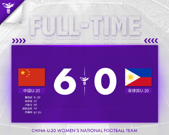 本場中國隊完全掌控了局面。霍悅欣在上半場打進兩球,鄒夢瑤也打進一球。下半場比賽,盧家玉、歐陽玉環(huán)和喬睿琪各入一球,幫助中國隊輕松取勝。
