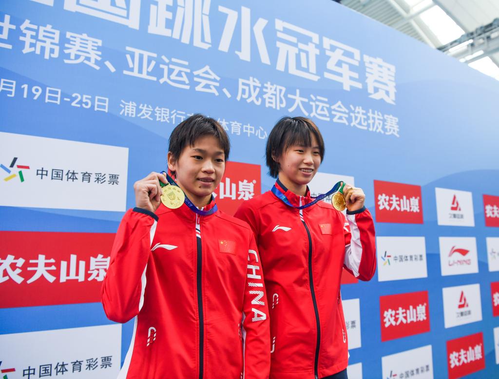 廣東隊的陳藝文和湖北浩沙隊的昌雅妮以總分307.65分的成績,繼去年在世錦賽和世界杯上攜手登上最高領獎臺后,奪得女子雙人3米跳板金牌。
