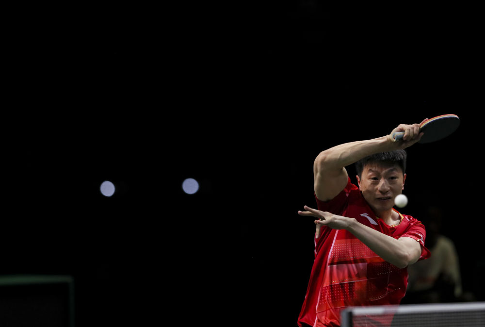 5月22日,馬龍在比賽中回球。新華社記者 張譽(yù)東 攝