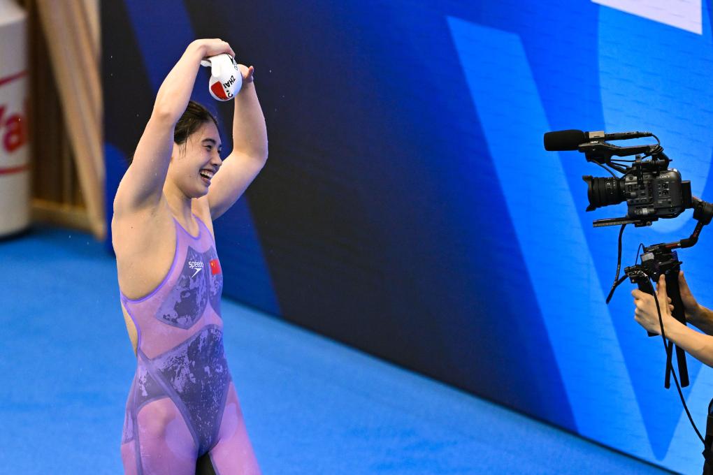 覃海洋摘金短短幾分鐘后,中國(guó)蝶泳名將張雨霏在女子100米蝶泳決賽中以56秒12的成績(jī)獲得冠軍,如愿以?xún)數(shù)財(cái)[脫了世錦賽“銅牌專(zhuān)業(yè)戶(hù)”的稱(chēng)呼,奪得個(gè)人首枚世錦賽金牌。雖然在東京奧運(yùn)會(huì)拿到200米蝶泳冠軍,但張雨霏在世錦賽上一直不太順利,在2022年布達(dá)佩斯世錦賽女子蝶泳從50米到200米三個(gè)距離的比賽中全部獲得銅牌。