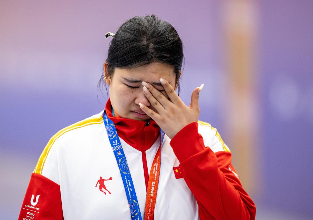 新華社成都8月1日電(記者王春燕、姚友明)中國大學(xué)生體育代表團(tuán)1日在成都大運(yùn)會(huì)繼續(xù)高歌猛進(jìn),共有10枚金牌入賬,以27金9銀10銅的成績(jī)繼續(xù)領(lǐng)跑金牌榜。賽場(chǎng)內(nèi)外,大學(xué)生運(yùn)動(dòng)員們也用歡笑與淚水“定格”青春的模樣。