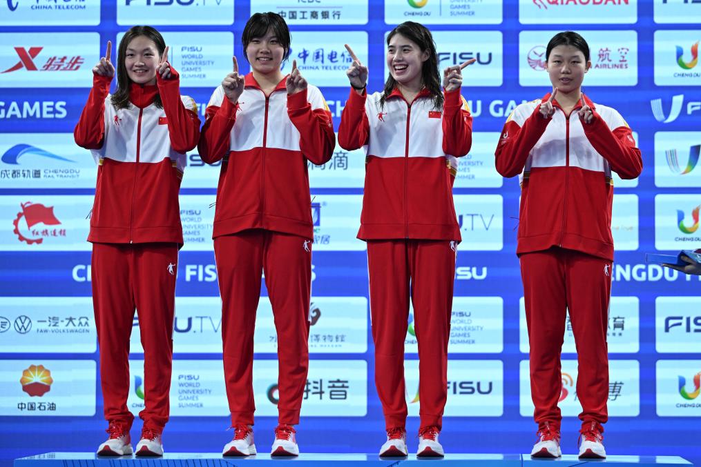 從日本福岡世錦賽凱旋的世界“蛙王”覃海洋和“蝶后”張雨霏當(dāng)天凌晨才到成都,隨即刷新男子100米蛙泳和女子50米蝶泳的賽會(huì)紀(jì)錄。張雨霏還率領(lǐng)中國隊(duì)以3分37秒51的成績(jī)創(chuàng)造了女子4x100米自由泳接力賽會(huì)紀(jì)錄,開啟成都大運(yùn)會(huì)游泳奪金之旅。