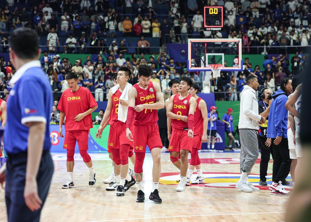 9月2日,中國隊球員在比賽后。當日,在菲律賓馬尼拉進行的2023年籃球世界杯17-32名排位賽中,中國隊以75:96不敵菲律賓隊。新華社記者 吳壯 攝
