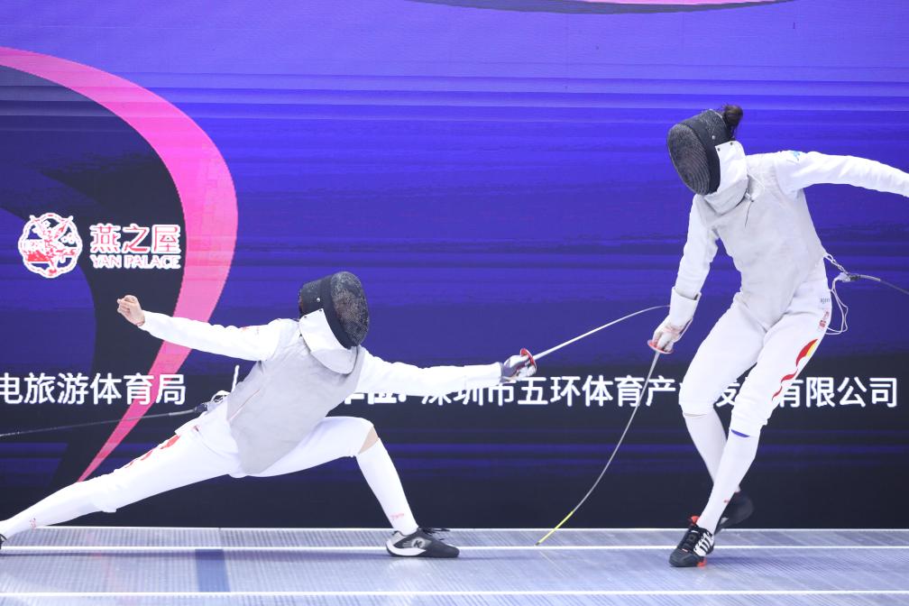 黃芊芊(左)在女子花劍個(gè)人決賽中對(duì)陣吳培林