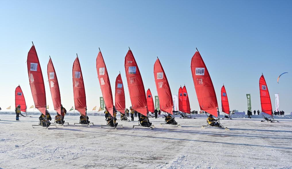 新華社長(zhǎng)春12月28日電 中國(guó)體育彩票查干湖冰上帆船邀請(qǐng)賽28日在吉林省松原市舉行,來(lái)自全國(guó)各地的20名運(yùn)動(dòng)員參賽。
