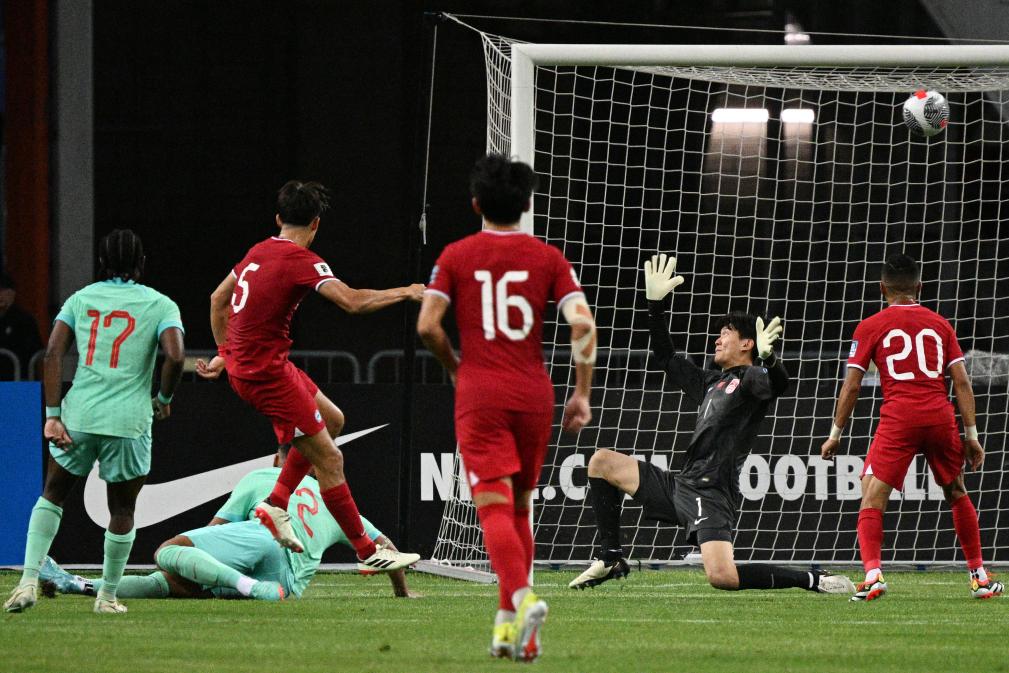 下半場風(fēng)云突變,新加坡隊率先換人收到奇效,替補登場的拉姆利在第53分鐘禁區(qū)外遠(yuǎn)射為主隊扳回一城。國足此后也進(jìn)行了換人調(diào)整,以圖穩(wěn)固領(lǐng)先優(yōu)勢,不料卻后防“失火”。第81分鐘,中國隊后衛(wèi)張琳芃禁區(qū)內(nèi)解圍踢空,新加坡隊另一名替補隊員馬勒抓住機(jī)會爆射破門,將比分扳平。