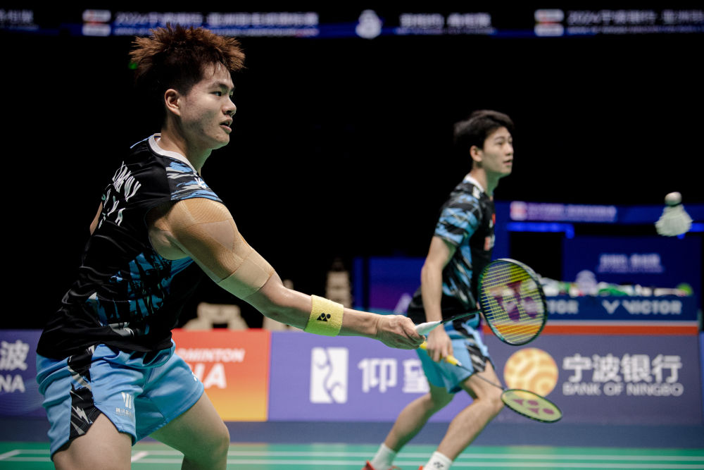 4月14日,梁偉鏗(左)/王昶在比賽中。新華社記者 江漢 攝 男雙決賽中,3號種子梁偉鏗/王昶以21:17、15:21和21:10擊敗馬來西亞組合吳世飛/伊祖丁。寧波人王昶如愿在家鄉(xiāng)登頂,賽后他說,就是奔著冠軍來的。 混雙金牌也歸屬中國隊(duì)。一場火花四濺的較量后,馮彥哲/黃東萍以13:21、21:15和21:14逆轉(zhuǎn)韓國的世錦賽冠軍組合徐承宰/蔡侑玎。