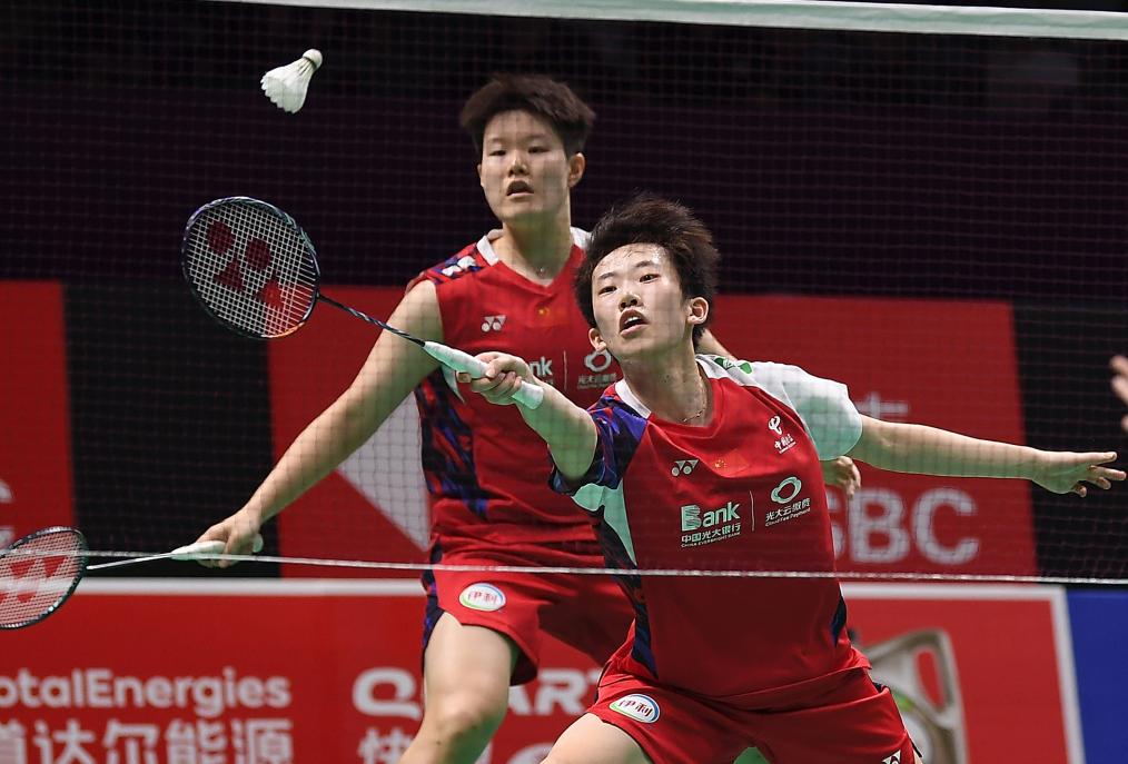 4月28日,中國隊(duì)組合劉圣書/張殊賢(前)在女雙比賽中。新華社記者 侯昭康 攝