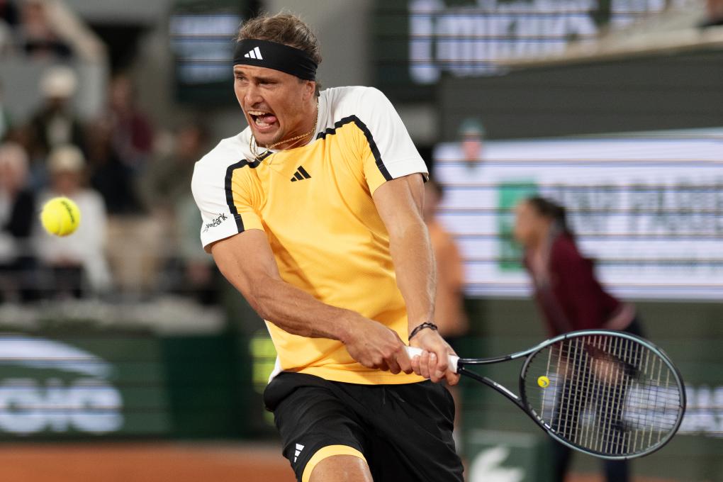 5月27日,茲維列夫在比賽中回球。新華社記者 孟鼎博 攝
