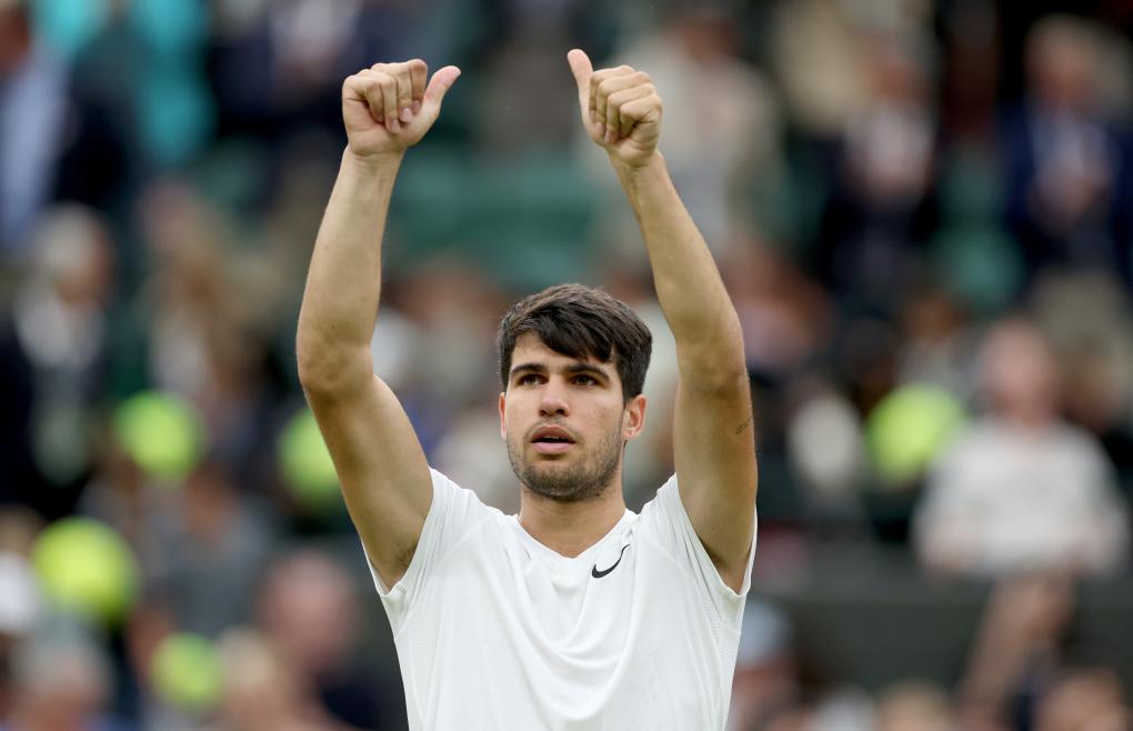 7月9日,阿爾卡拉斯在比賽后向觀眾致意。新華社記者 李穎 攝