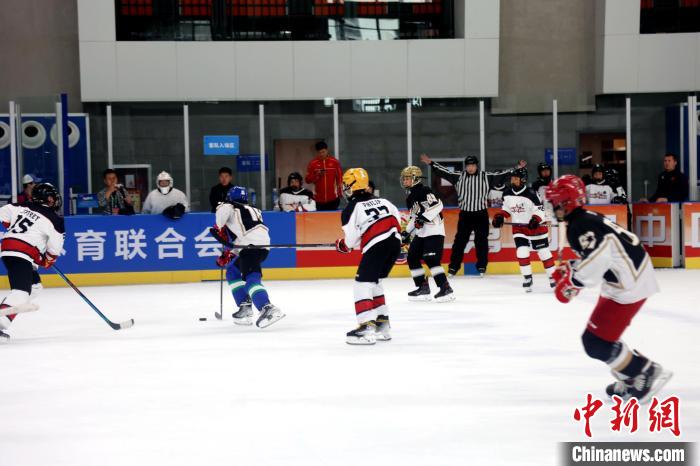 圖為第四屆中國青少年冰球聯(lián)賽全國總決賽比賽現(xiàn)場(chǎng)。張?zhí)砀?攝