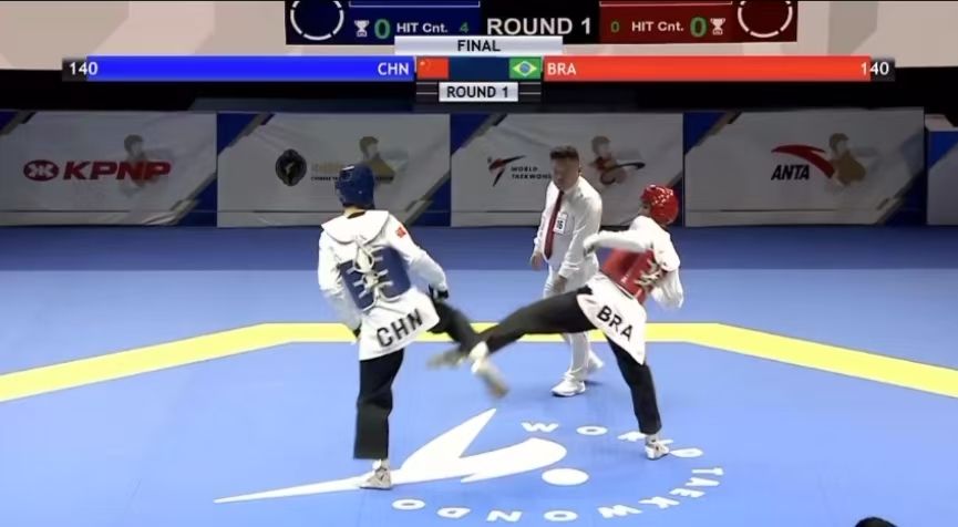 決賽首局比賽,中國(guó)隊(duì)肖樹楠以一個(gè)腹部踢擊得分加對(duì)手出界拉開分差,占據(jù)優(yōu)勢(shì)后中國(guó)隊(duì)持續(xù)迎擊,以能量值130:70獲勝。第二局中國(guó)隊(duì)開場(chǎng)防守松懈,被扣掉40分(能量值),盡管后程中國(guó)隊(duì)加強(qiáng)攻勢(shì),還是以能量值65:75不敵對(duì)手。在決勝局中,巴西隊(duì)兩記直拳打開局面,能量值占優(yōu),此后雖然巴西隊(duì)兩次被判消極進(jìn)攻,但中國(guó)隊(duì)未能把握住機(jī)會(huì),最終以能量值110:115輸?shù)舻谌郑蟊确?:2告負(fù)。