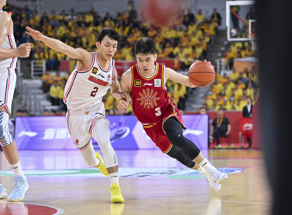3月5日,廣東隊(duì)球員胡明軒(右)在比賽中上籃。當(dāng)日,在2024-2025賽季中國男子籃球職業(yè)聯(lián)賽(CBA)常規(guī)賽第36輪比賽中,廣東隊(duì)主場127:83戰(zhàn)勝遼寧隊(duì)。新華社發(fā)(鄭家雄攝)