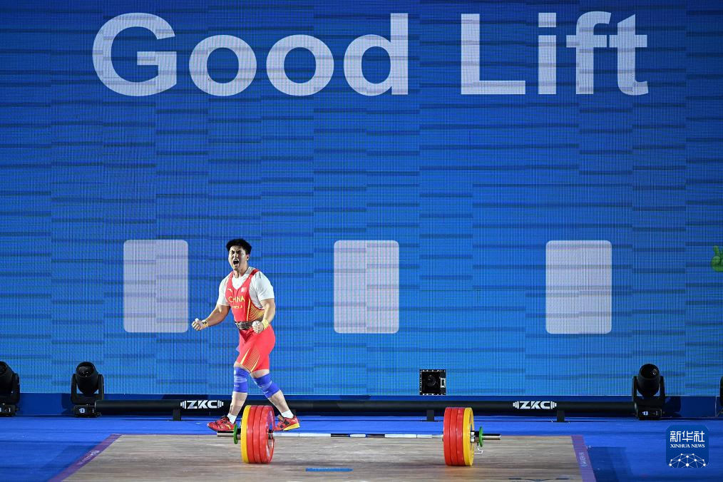 5月13日,中國選手錢飛翔在挺舉比賽中慶祝最后一次試舉成功。最終,他獲得抓舉、挺舉兩項(xiàng)季軍和總成績第四名。新華社記者 侯昭康 攝 男子96公斤級(jí)是當(dāng)日最晚進(jìn)行的比賽,賽場涌入許多觀眾。中國隊(duì)錢飛翔在助威聲中完成了抓舉173公斤、挺舉207公斤,收獲兩枚銅牌,總成績380公斤位列第四。該級(jí)別所有金牌均歸屬伊朗選手。莫伊尼·塞德赫奪得抓舉金牌,阿里普爾收獲挺舉和總成績金牌。 (責(zé)任編輯:蔡文斌) |