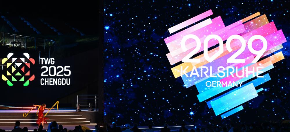 成都世運(yùn)會(huì)組委會(huì)主席施小琳、國(guó)際世界運(yùn)動(dòng)會(huì)協(xié)會(huì)主席何塞·佩魯雷納先后致辭,向?yàn)楸緦檬肋\(yùn)會(huì)圓滿(mǎn)成功作出貢獻(xiàn)的所有人員表示感謝。下屆世運(yùn)會(huì)舉辦城市德國(guó)卡爾斯魯厄市市長(zhǎng)弗蘭克·門(mén)特魯普致辭,熱情邀請(qǐng)全球賓客四年后相聚卡爾斯魯厄。