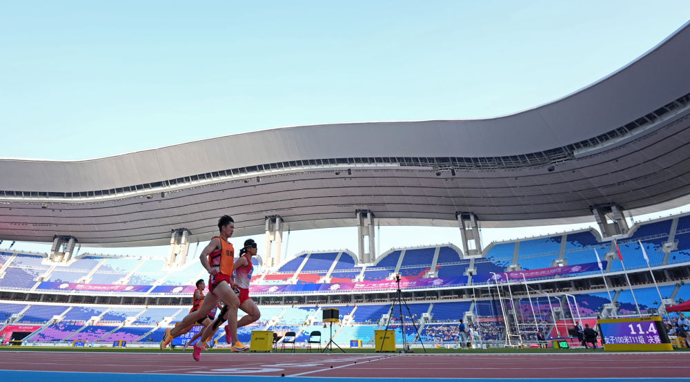 當(dāng)日,伴隨著提振人心的醒獅表演,田徑、聾人籃球等項(xiàng)目都在簡(jiǎn)短的開賽儀式后進(jìn)入競(jìng)賽環(huán)節(jié)。在廣東省奧體中心體育場(chǎng)舉行的田徑比賽傳來(lái)捷報(bào),巴黎殘奧會(huì)兩銀得主、山東選手郭芊芊在女子400米T35級(jí)比賽中,以超世界紀(jì)錄、破全國(guó)紀(jì)錄的1分14秒65率先沖線。兩屆殘奧會(huì)冠軍、陜西隊(duì)的董飛霞在女子鉛球F55級(jí)比賽中摘下桂冠。在她的鼓勵(lì)下,陜西隊(duì)當(dāng)天一共獲得6枚田徑金牌。