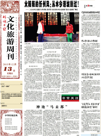 由忻州市文聯(lián)、忻州市劇協(xié)選送的二人臺(tái)小戲《光棍漢與外來妹》(表演:呂改萍、張璟、任浩)入選在江蘇省張家港市舉辦的第六屆全國小戲小品展覽演出,將與郭達(dá)、李文啟等全國著名笑星同臺(tái)競技,成為近3年來山西唯一一個(gè)登上全國小戲小品展演舞臺(tái)的“狀元郎”!