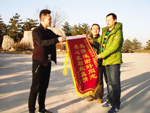 1月25日下午,葛家人將一面寫有“熱情感謝好同志、熱心救助獻(xiàn)真情”的錦旗送到市九龍崗城郊森林公園,以表達(dá)對該公園職工馬國榮熱心救人的感激之情。馬國榮謙虛地說:“我只是做了自己應(yīng)該做的事情,若是別人遇到也會(huì)這么做的。”