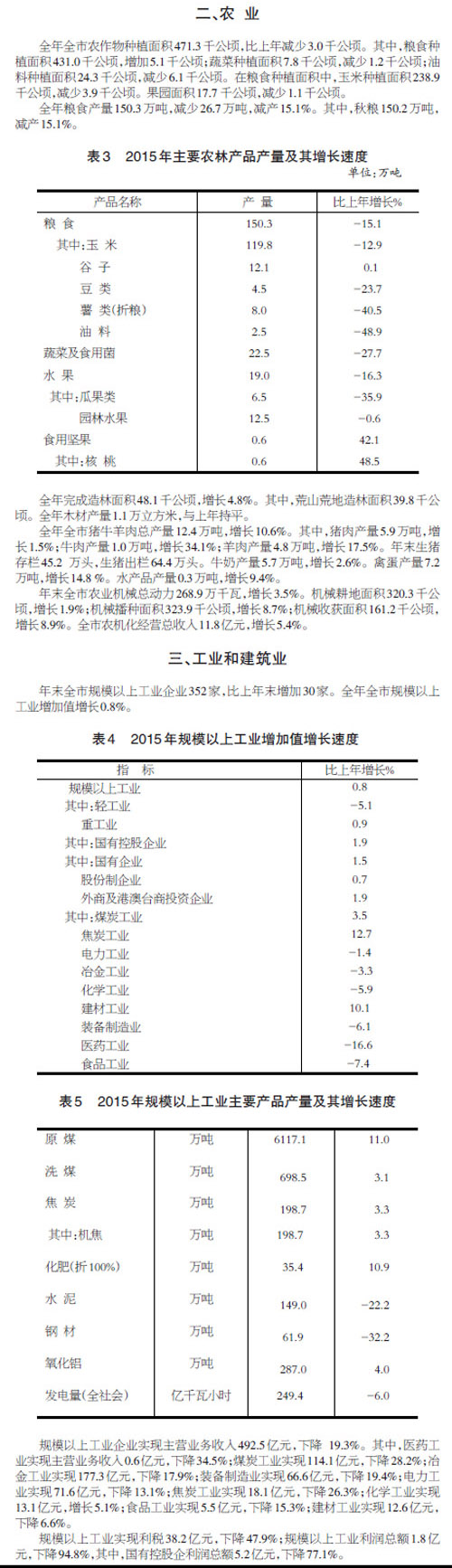 忻州市2015年國(guó)民經(jīng)濟(jì)和社會(huì)發(fā)展統(tǒng)計(jì)公報(bào)