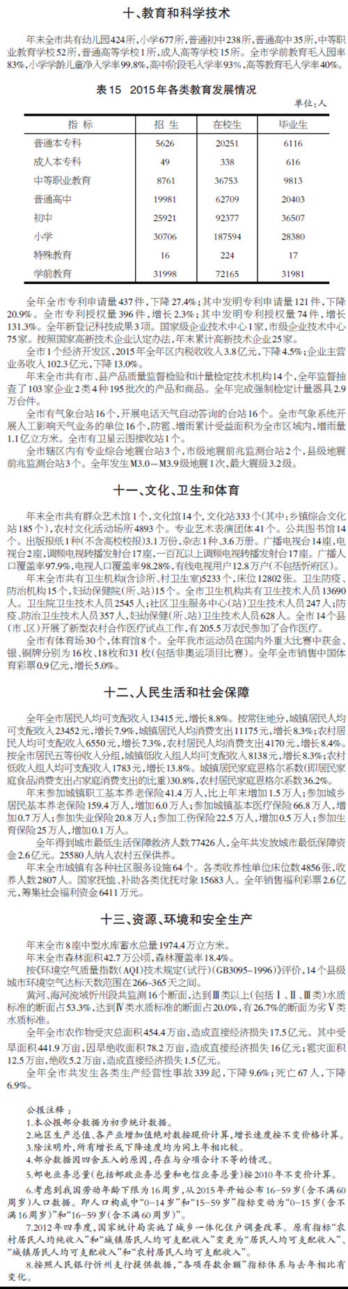 忻州市2015年國民經(jīng)濟和社會發(fā)展統(tǒng)計公報