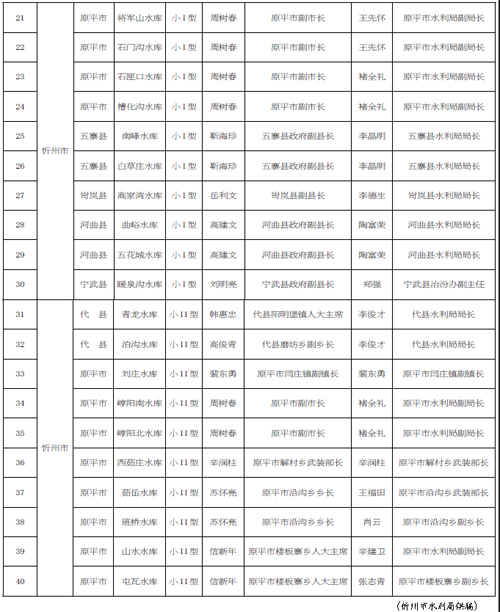 2016 年忻州市小型水庫大壩安全責(zé)任人