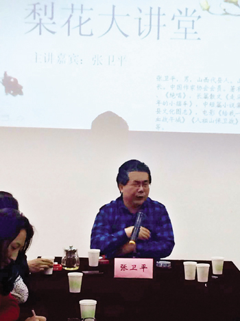 農(nóng)家出身的張衛(wèi)平來(lái)自代縣基層,現(xiàn)為中國(guó)作家協(xié)會(huì)會(huì)員,著有長(zhǎng)篇小說(shuō)《給我一支槍》、《絕唱》,長(zhǎng)篇散文《走馬雁門》,短篇小說(shuō)集《童年的小搖車》、中短篇小說(shuō)集《野魂》,電影《給我一支槍》、《浴血雁門關(guān)》、《血戰(zhàn)午城》、《人祖山保衛(wèi)戰(zhàn)》,電視連續(xù)劇《大宗師》。在這次“梨花大講堂”文學(xué)講座上,張衛(wèi)平從文學(xué)的載體切入,縱論了從口頭文學(xué)到紙質(zhì)文學(xué)、影視文學(xué)、網(wǎng)絡(luò)文學(xué)的演變發(fā)展;結(jié)合自己的創(chuàng)作感悟,站在技術(shù)層面,從語(yǔ)言、人物、情感、結(jié)構(gòu)、思想五個(gè)高度闡述了對(duì)文學(xué)的判斷;站在藝術(shù)的境界,分情感、歷史、精神三大板塊,講解了作品提升的高度。該市偵探小說(shuō)作家狄保壽感到張衛(wèi)平的講解切中了文學(xué)創(chuàng)作的要害,讓大家明白了如何提高文學(xué)創(chuàng)作水平的道理。青年文學(xué)愛好者李詠梅表示要按照張衛(wèi)平老師的講授,不斷努力,寫出更好的文學(xué)作品。該市文聯(lián)主席鄭建芳告訴記者:“梨花大講堂要形成常態(tài)化,為提升全市文學(xué)創(chuàng)作隊(duì)伍整體素質(zhì)發(fā)力?!保ㄌA紅)