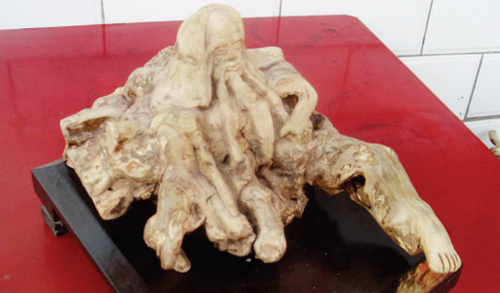 根雕作品:《赤腳大仙》 人生一直在創(chuàng)新 高來來的人生是充滿創(chuàng)新和挑戰(zhàn)的。他搞過新式農(nóng)具研發(fā),當(dāng)年經(jīng)他研發(fā)設(shè)計(jì)的四行播種機(jī)一時(shí)間成為提高效率的重要工具;他用自制硫酸與氧化煤反應(yīng)制作化肥的技法,成為當(dāng)時(shí)土法制肥的一種科技創(chuàng)新。 之后他開始經(jīng)營河塘養(yǎng)殖,在此期間,經(jīng)過一段時(shí)間考察,在2003年春,他又做出一個(gè)大膽的決定,自建一座水上公園。在隨后的三年時(shí)間里,他在不借助外力的情況下,自行設(shè)計(jì)、自己建造,在8 畝地大的河塘上建起了四座風(fēng)格迥異的仿古木質(zhì)結(jié)構(gòu)涼亭,上面的繪畫等皆出自他的手筆,不僅如此,他還匠心獨(dú)具,利用當(dāng)?shù)鬲?dú)有的水資源規(guī)劃改造了兩個(gè)人工湖,建造了兩個(gè)大小不一的游泳池,栽植了1500 余株景觀樹木和優(yōu)種葡萄。在保障安全的前提下,又陸續(xù)自制了木馬、秋千、轉(zhuǎn)盤等游樂設(shè)備,動(dòng)手打造了7 只木制游船,先后投資近80 萬元。到2008 年,一座靠個(gè)人努力建設(shè)的小型公園初具規(guī)模?,F(xiàn)在,私營的水上公園和后來政府投資建設(shè)的府谷濱河公園、保德飛龍山山地公園,都成了保德、府谷兩縣人們休閑娛樂的好去處。 |