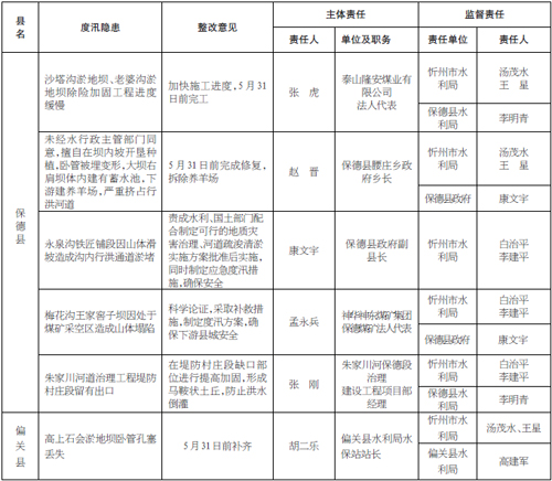 忻州市2016年度汛隱患檢查通報表