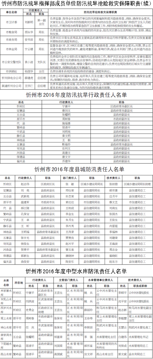 忻州公布今年防汛抗旱責(zé)任人暨工作職責(zé)