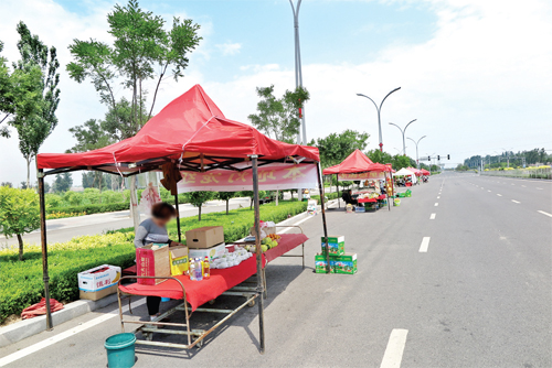 希望有關(guān)部門,加強(qiáng)對瓜農(nóng)交通安全教育,并采取有效措施,及時(shí)制止他們在馬路擺攤叫賣行為。同時(shí),希望廣大司機(jī)不要隨意停車,以免影響交通安全。圖為擺在旭來街上的香瓜攤點(diǎn)。(張志遠(yuǎn) 攝)