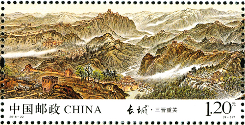 中國萬里長城是世界上修建時間最長、工程量最大的冷兵器戰(zhàn)爭時代的國家軍事性防御工程,是中華民族的古建瑰寶,凝聚著我們祖先的血汗和智慧,是中華民族的象征和驕傲。長城有極高的旅游觀光價值和歷史文化意義,是中華民族古老文化的豐碑和智慧結(jié)晶,象征著中華民族的血脈相承和民族精神。1961年,長城被列為國家級重點文物保護單位,1987年,被列為世界文化遺產(chǎn),2002年,被列為世界新七大奇跡。1984年,鄧小平、習(xí)仲勛作出“愛我中華,修我長城”的題詞,2006年,國務(wù)院頒布了《長城保護條例》。2015年,習(xí)近平總書記、李克強總理對長城保護工作作出了重要批示。今年,為紀(jì)念《長城保護條例》頒布10周年,中國郵政專門發(fā)行了《長城》特種郵票,一套九枚,分別為:關(guān)山滄海、薊遼天塹、燕趙雄風(fēng)、京畿屏障、三晉重關(guān)、長河飛龍、高原北望、大漠關(guān)城、絲路古道,總面值13.2元。全套9枚郵票中,山西有兩枚長城郵票。第5枚“三晉重關(guān)”、第6枚“長河飛龍”展現(xiàn)了山西十幾處長城景點,成為全國境內(nèi)長城入選最多的省份。長城景點濃縮方寸郵票之中,姿態(tài)萬千,各具特色。郵票色彩豐富,設(shè)計精美,充分體現(xiàn)出了長城的雄偉壯觀。